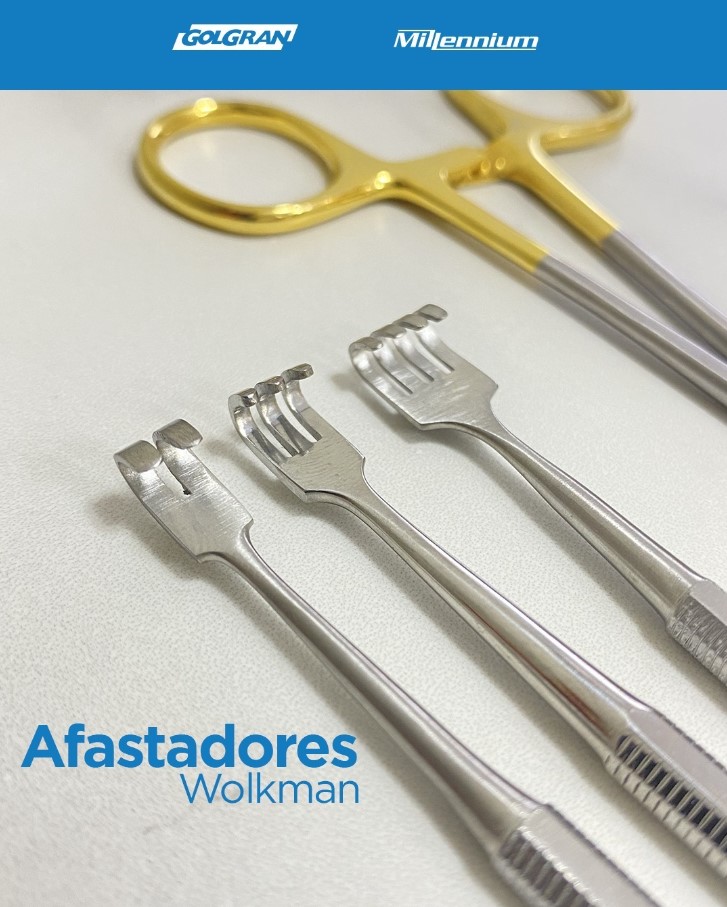 Utilizados para cirurgia, os Afastadores Wolkman Golgran possuem garras na extremidade para reter com mais facilidade os tecidos.