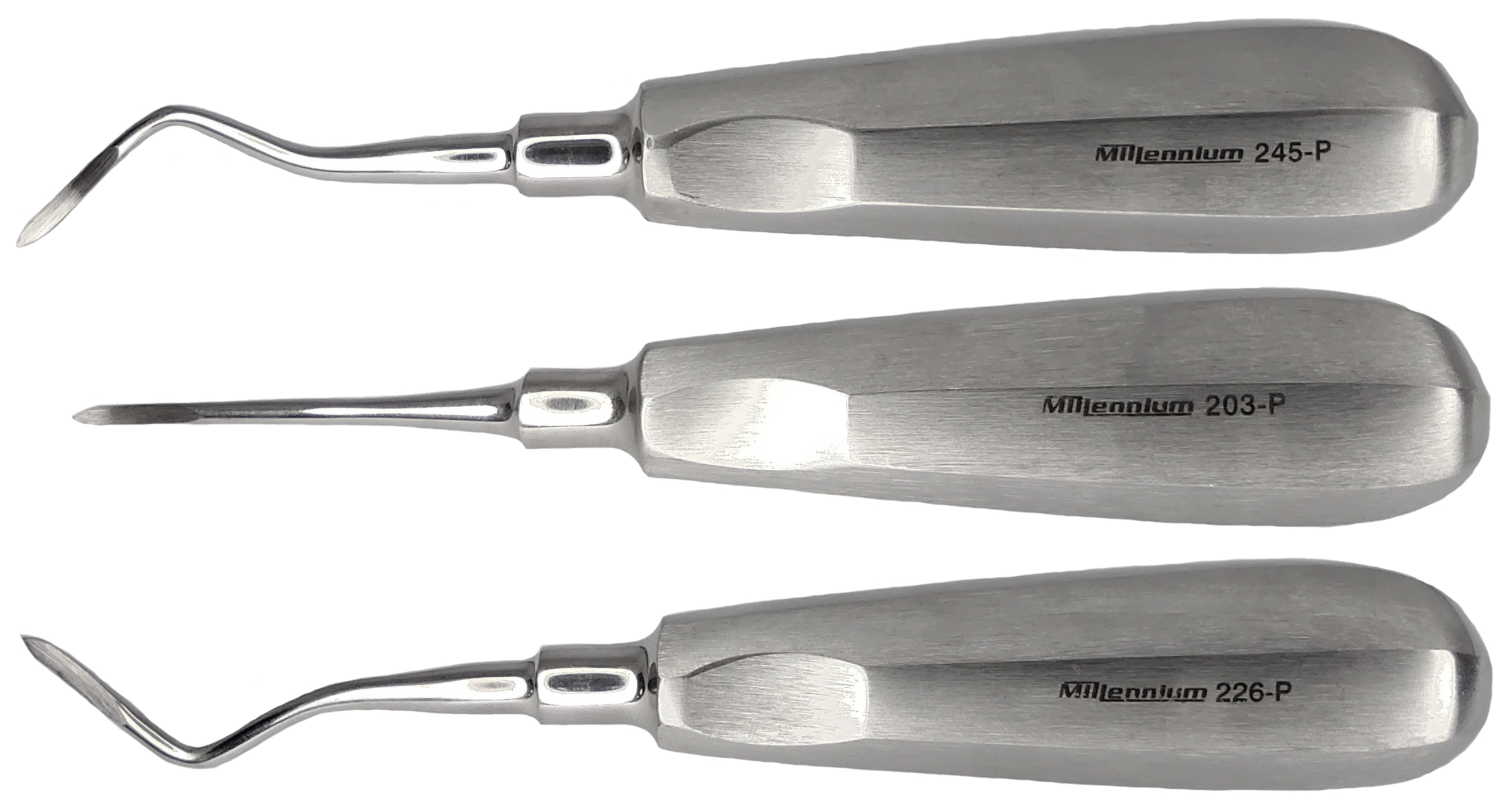 Instrumento Delicado para a remoção de pontas de raiz em áreas de difícil acesso. Os Elevadores são instrumentos não articulados, produzidos em aço inoxidável com cabo oco e pontas ativas com design e ângulo diferenciados para facilitar a luxação na Exodontia.