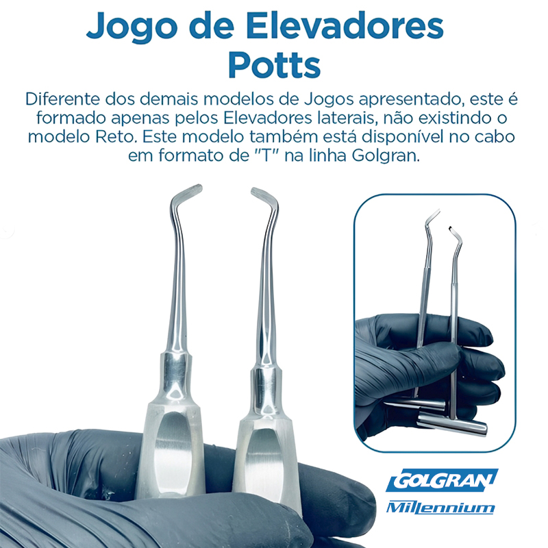 O Elevador Potts Direito Millennium é um instrumento cirúrgico odontológico indicado para a luxação e remoção de dentes e raízes, oferecendo desempenho eficiente em procedimentos de exodontia.