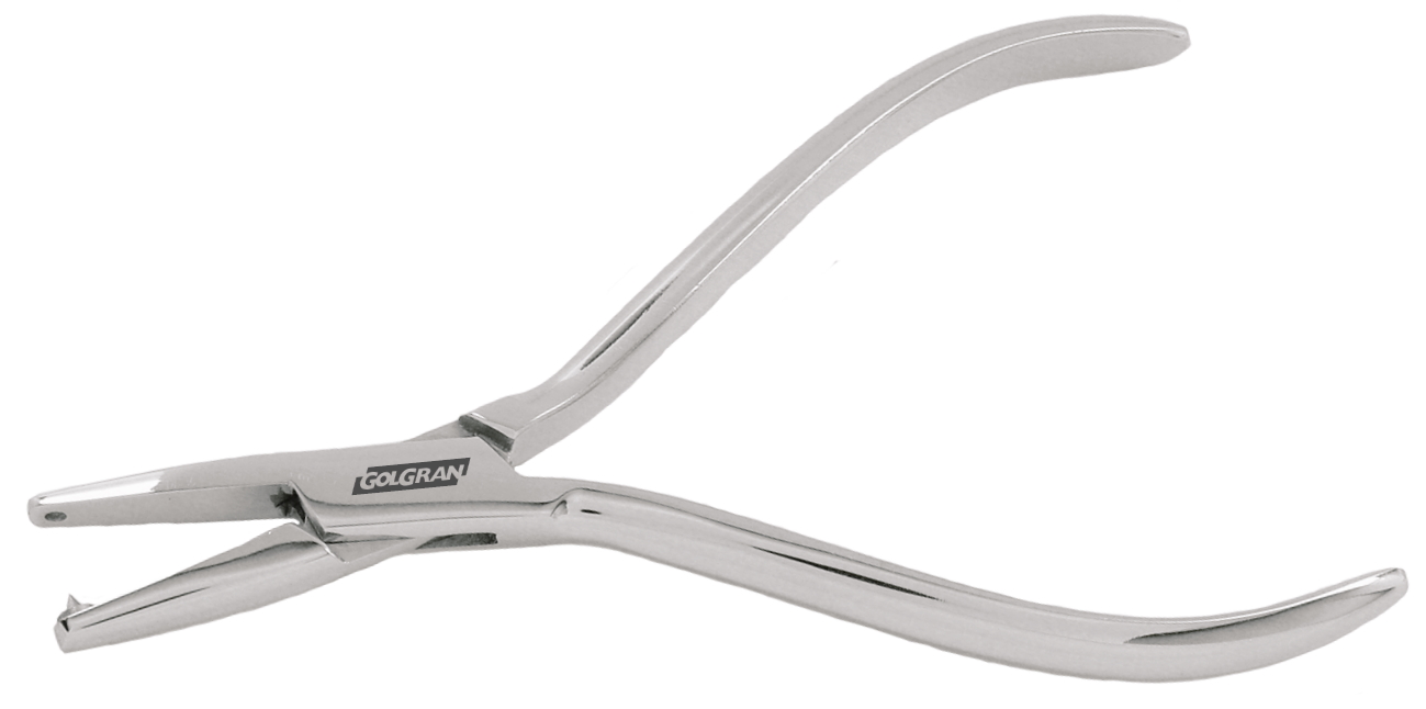O ALICATE ORTO 141 FORM MATRIZ GOLGRAN é Utilizado como formador de matriz individual, inclusive em odontopediatria é uma opção para substituir o porta matriz. Após formar um arco com a fita matriz e encontrar o diâmetro necessário, utilize o Alicate 141 para perfurar onde a fita matriz cruzar na formação do circulo, primeiramente faça o furo de dentro para fora e na sequencia de fora para dentro (a fim de não deixar rebarbas na parte interna da matriz e arranhar o esmalte).