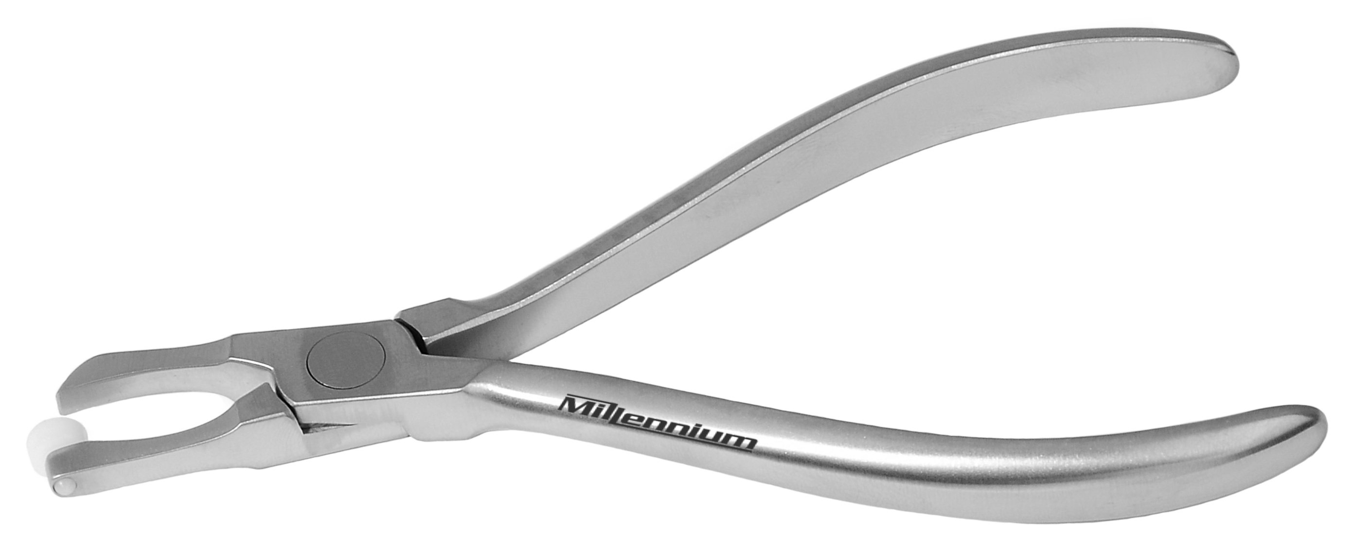 Alicate utilizado para remover resina residual do dente após remoção do braquete.