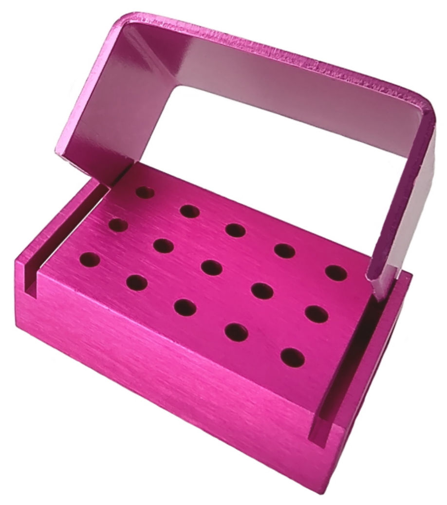 Indicado para auxilia na organização, armazenamento, transporte e esterilização de brocas odontológicas.
