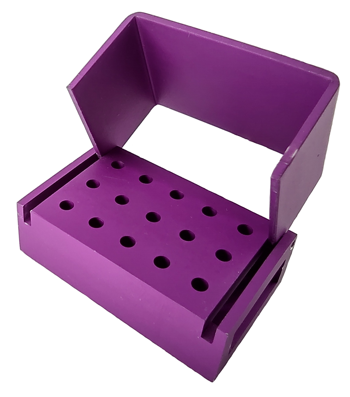 Indicado para auxilia na organização, armazenamento, transporte e esterilização de brocas odontológicas.