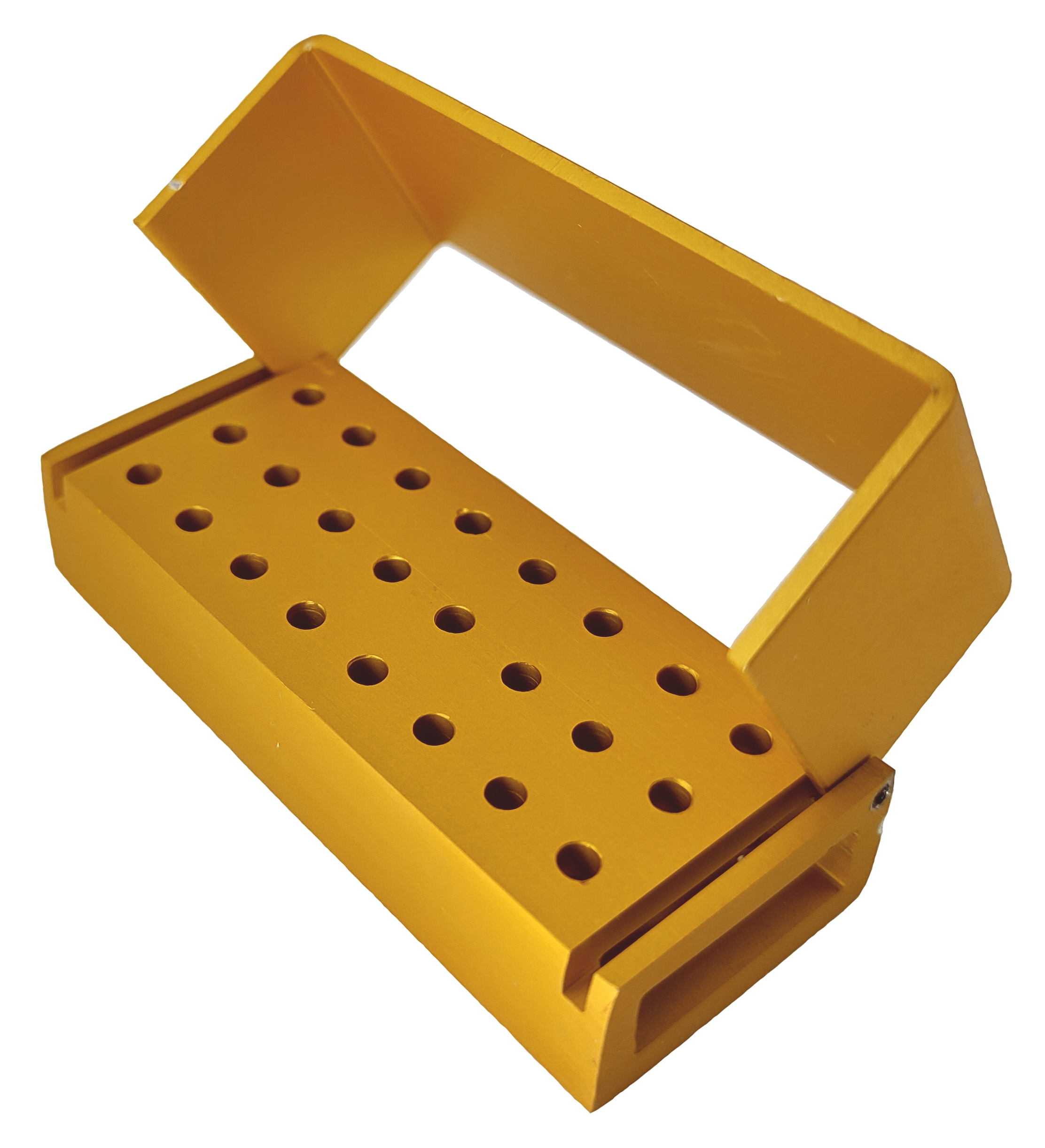 Indicado para auxilia na organização, armazenamento, transporte e esterilização de brocas odontológicas.