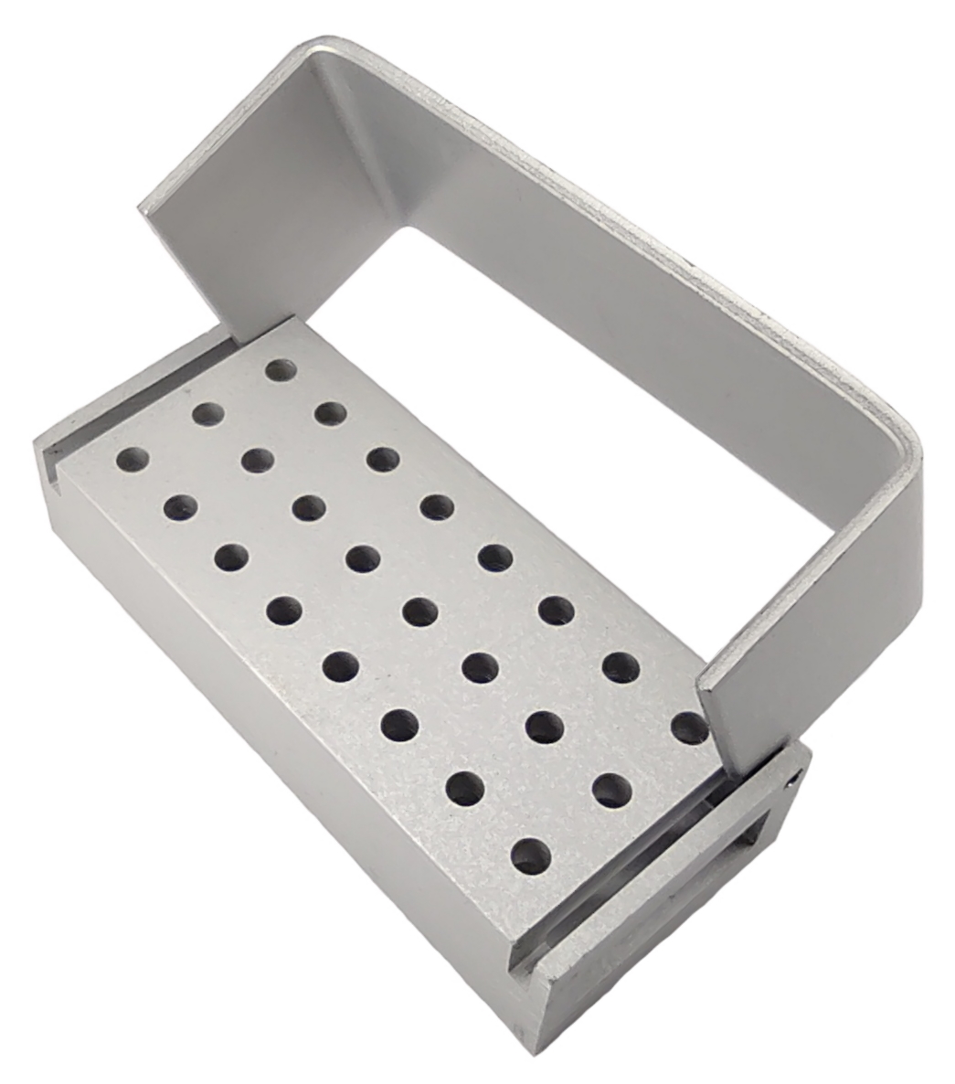 Indicado para auxilia na organização, armazenamento, transporte e esterilização de brocas odontológicas.