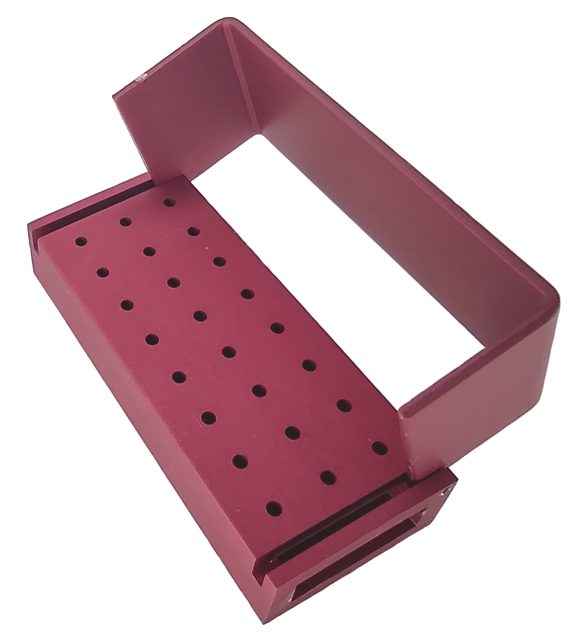 Indicado para auxilia na organização, armazenamento, transporte e esterilização de brocas odontológicas.