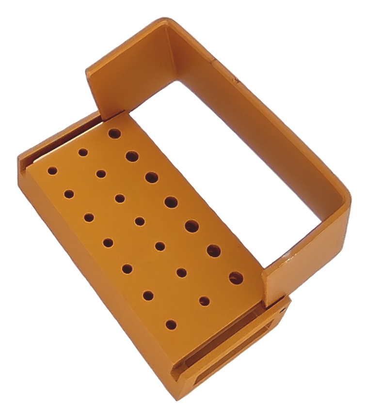Indicado para auxilia na organização, armazenamento, transporte e esterilização de brocas odontológicas.