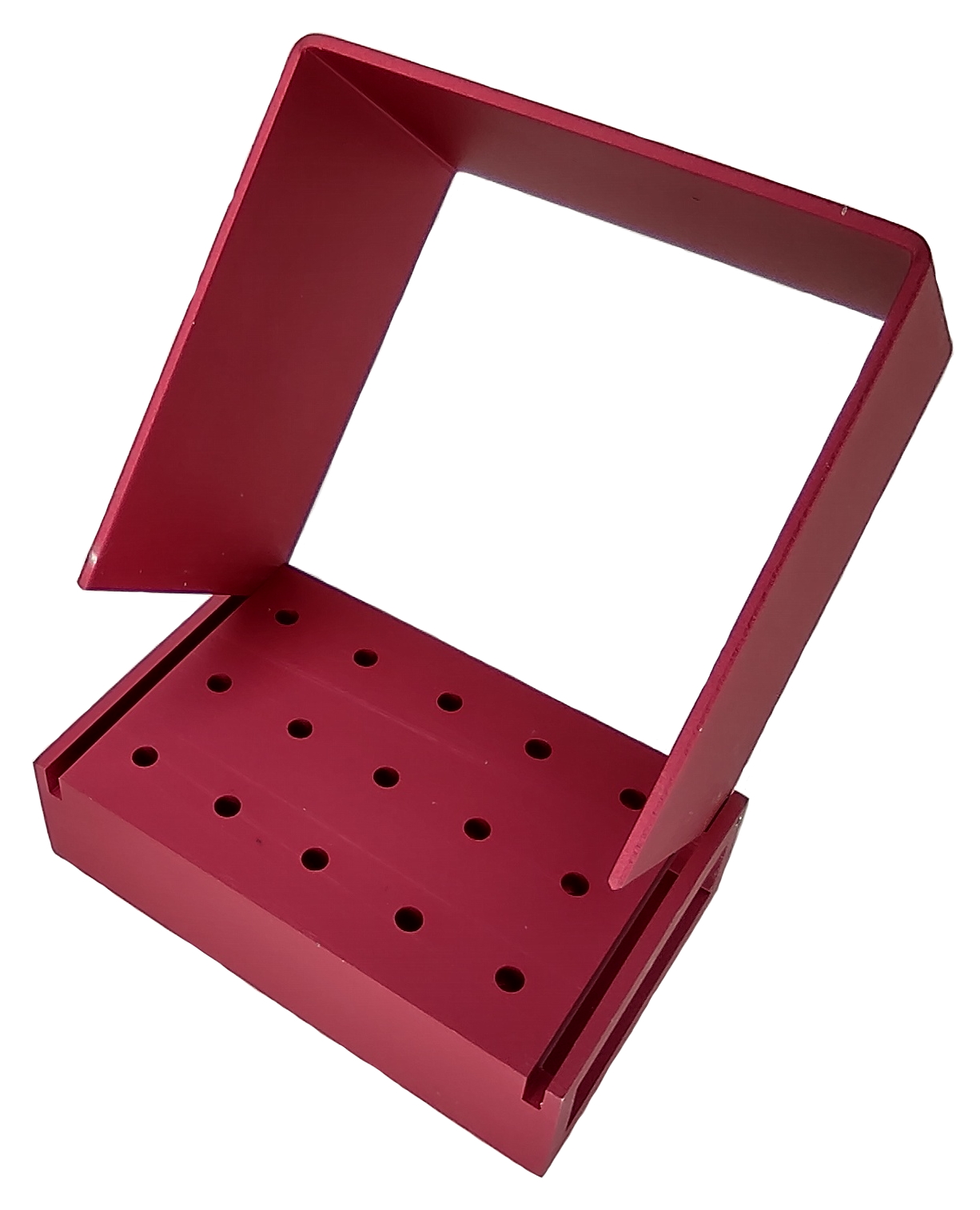 Indicado para auxilia na organização, armazenamento, transporte e esterilização de brocas odontológicas.
