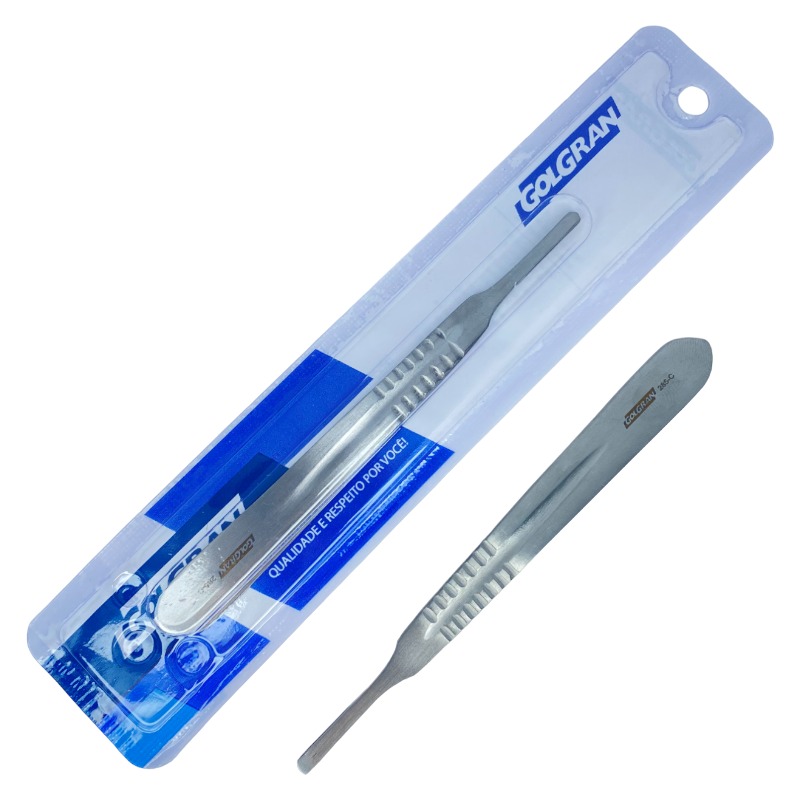 É mais utilizado na área medica e veterinária por comportar laminas de bisturi maiores. Tem desenho balanceado e de precisão, permitindo o controle na hora da incisão. As laminas mais utilizadas são 18, 19, 20, 21, 22, 23, 24 e 25.