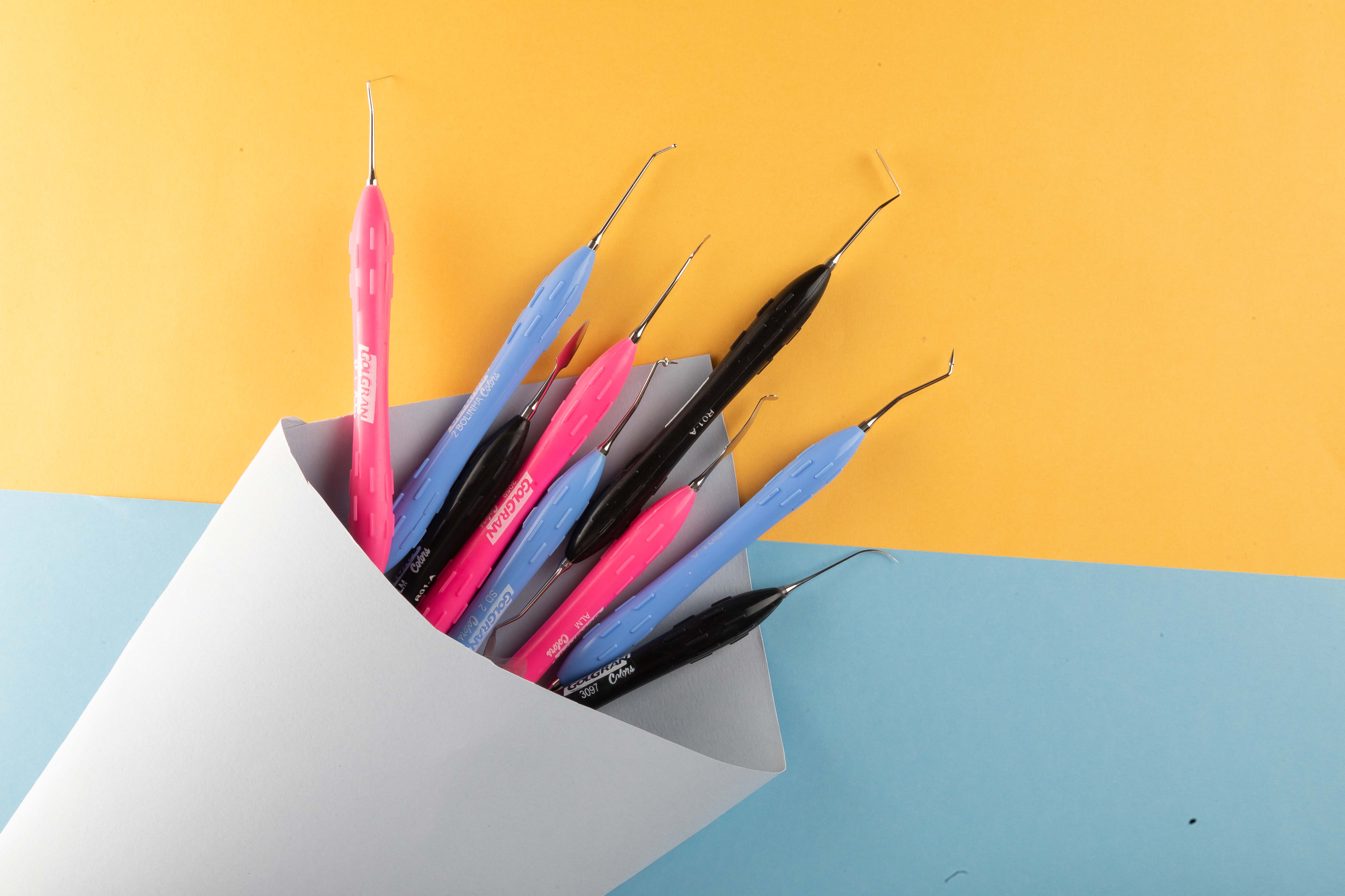 Os cabos das espátulas de silicone da Golgran Colors tem o formato ergonômico, super leves, proporcionando conforto, estabilidade e aderência nas mãos do profissional. Suas pontas ativas são delicadas e produzidas em aço inox de alta qualidade com polimento extra para não grudar na manipulação da resina. A Espátula 3078 tem a ponta ativa em tamanho reduzido em relação as convencionais, o que a torna excelente para aplicar a resinas em cavidades posteriores de pacientes com dificuldade de abertura bucal. Disponíveis em 3 cores vibrantes para que você tenha a possibilidade de organizar as suas espátulas por cor para facilitar a organização e identificação. Por exemplo: espátulas rosas para posteriores e azuis para anteriores. 🤩 Além de darem um toque de personalidade e diversão no dia-a-dia.
