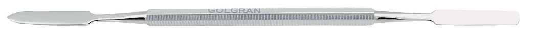 Possui duas pontas, sendo uma com formato triangular e a outra mais arredondada e é utilizada para manipulação de vários produtos, entre eles a riva.