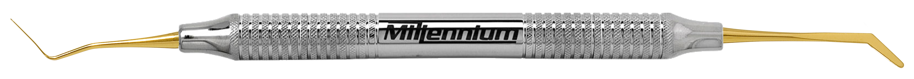 Combinação de espátula com brunidor, utilizado para condensação e escultura de compósito.