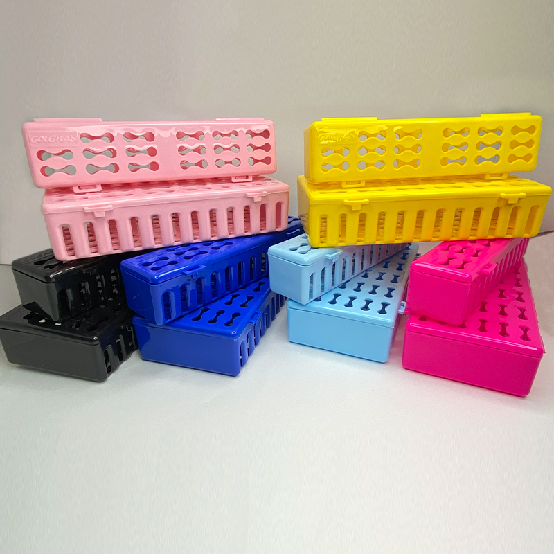 Produzido em material plástico resistente, o estojo pode ser esterilizado em autoclave até 135 °C, seguindo os protocolos de biossegurança adotados em clínicas odontológicas.