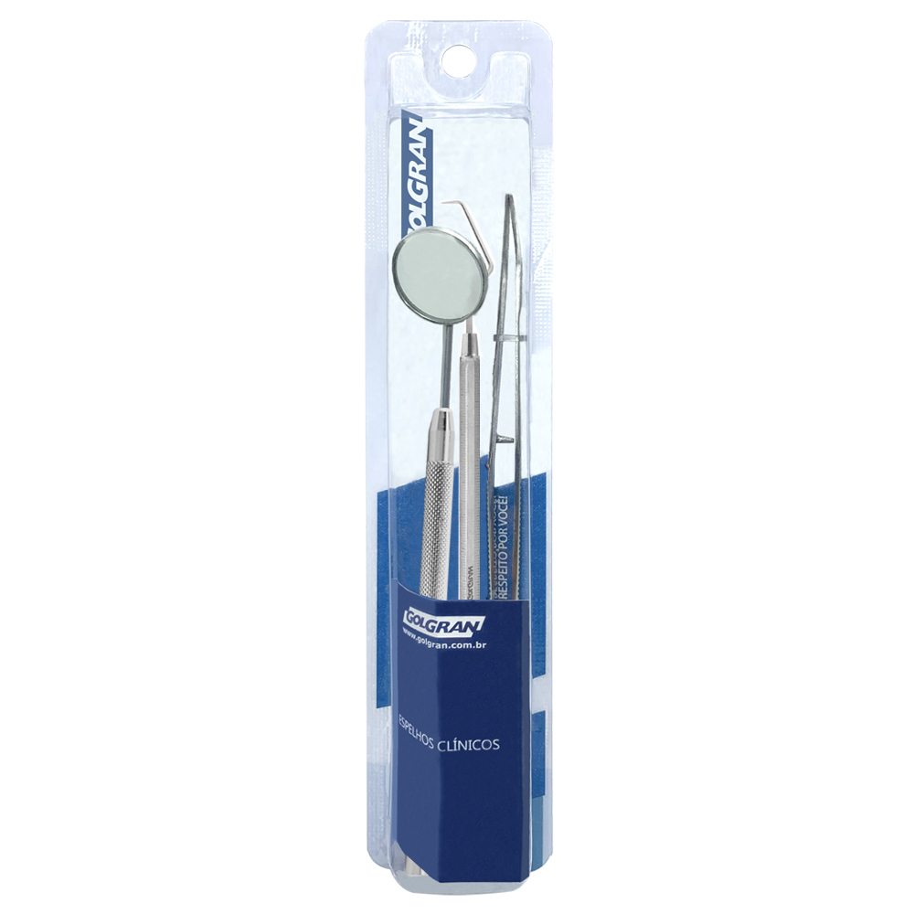 O Kit Clínico Básico Prata Golgran é o conjunto fundamental de instrumentais para exame clínico odontológico, reunindo os três instrumentos indispensáveis para inspeção, diagnóstico inicial e manipulação de materiais durante o atendimento.