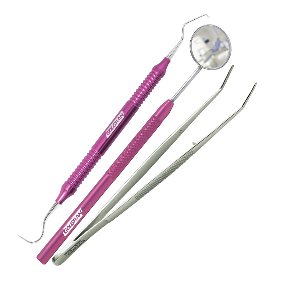 O Kit Clínico Básico Rosa Golgran é um conjunto fundamental de instrumentais odontológicos, projetado para atender às atividades de exame clínico e diagnóstico com praticidade, conforto e precisão. Composto por três instrumentos essenciais — sonda exploradora, espelho clínico com cabo e pinça clínica — este kit reúne as ferramentas básicas que todo estudante de odontologia e profissional da área utilizam rotineiramente em suas atividades clínicas.