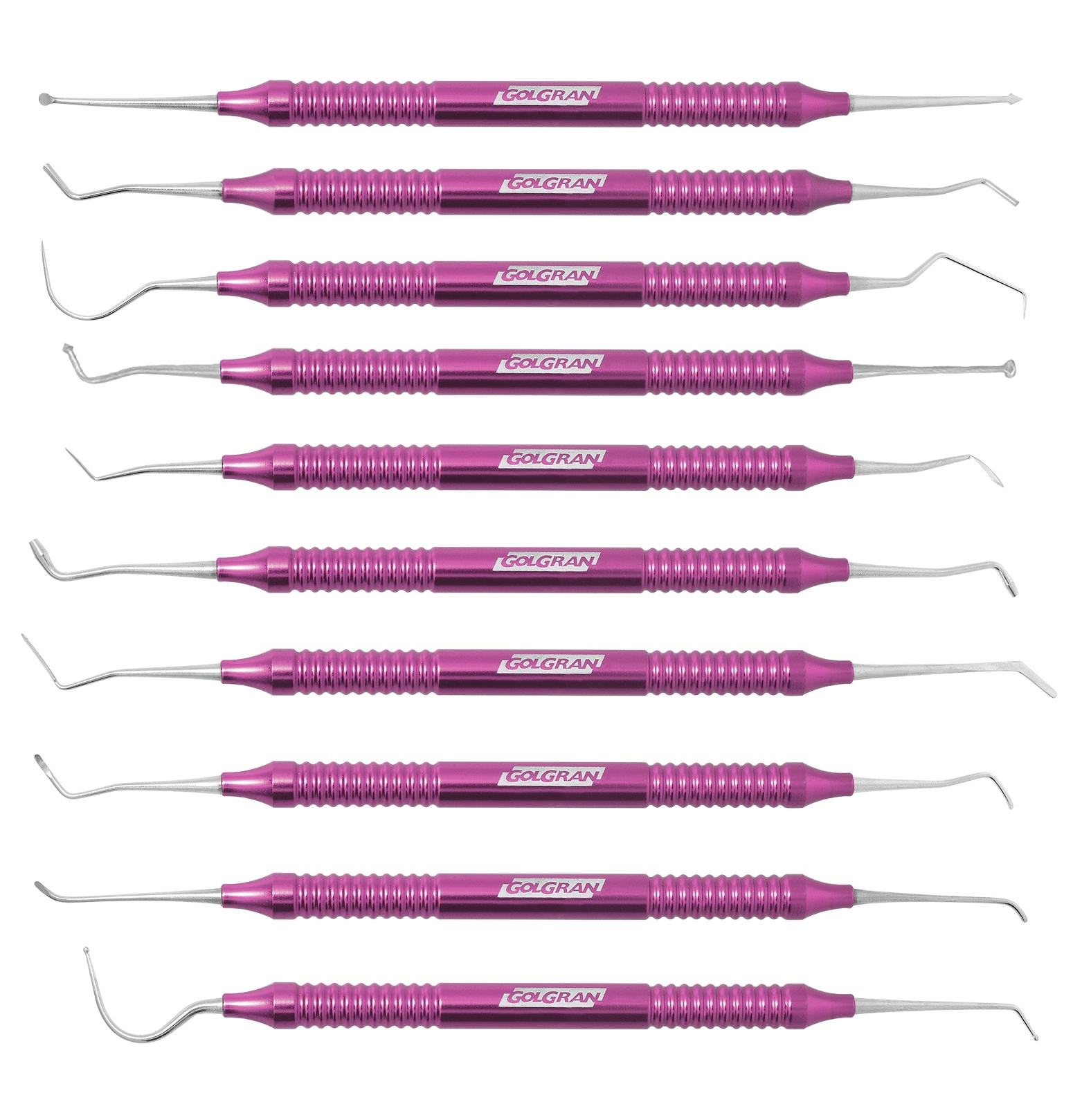 Kit com 10 instrumentais mais básicos para odontopediatria: 1 Calcador Ward Infantil: Pontas duplas, pequenas e arredondadas é para condensar compósito e amálgama;1 Calcador Hollemback Infantil: Pontas duplas, formato cônico arredondado para condensar compósito e amálgama;1 Sonda Nº 5 Infantil: Pontas duplas, para detectar falhas na estrutura dos dentes;1 Esculpidor 3SS Infantil: Para esculpir anatomias nas restaurações com lâminas pequenas;1 Aplicador Dycal Infantil: Aplicação de hidróxido de cálcio em cavidades profundas;1 Esculpidor Discóide Infantil: discoide remove excessos e a lamina do cleoide esculpe a anatomia oclusal;1 Espátula de Silicato Infantil: Leva resina dentro da cavidade;1 Escavador Nº 5 Infantil e 1 Escavador Nº 16 Infantil: Têm a finalidade de cortar tecidos e retiradas de partes moles (dentina);1 Brunidor Infantil: Para acabamento de restaurações de amálgama