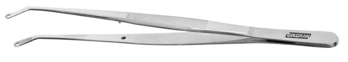 Também conhecido como Pinça Corn, esse instrumento é utilizado para auxiliar o profissional a guiar a sutura corretamente evitando o rompimento do tecido mole. A agulha já posicionada no porta agulha deve passar pelo orifício da Pinça Auxiliar de Sutura, utilizando-a como um guia para o procedimento.