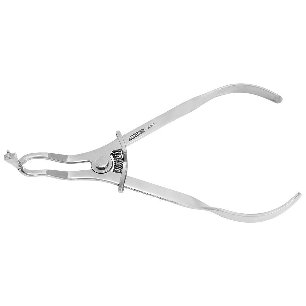 Fabricada em aço inoxidável de alta qualidade, apresenta excelente resistência à corrosão e longa vida útil, mesmo sob repetidos ciclos de esterilização. Seu design funcional permite abertura adequada dos grampos com estabilidade, reduzindo riscos de deslizamento e proporcionando maior segurança tanto para o profissional quanto para o paciente.