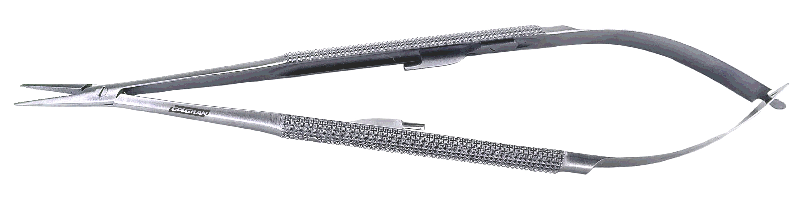Utilizado para segurar a agulha e confeccionado com ponta delicada e revestido com pastilha de vídea oferece melhor acesso e maior segurança em microcirurgias.