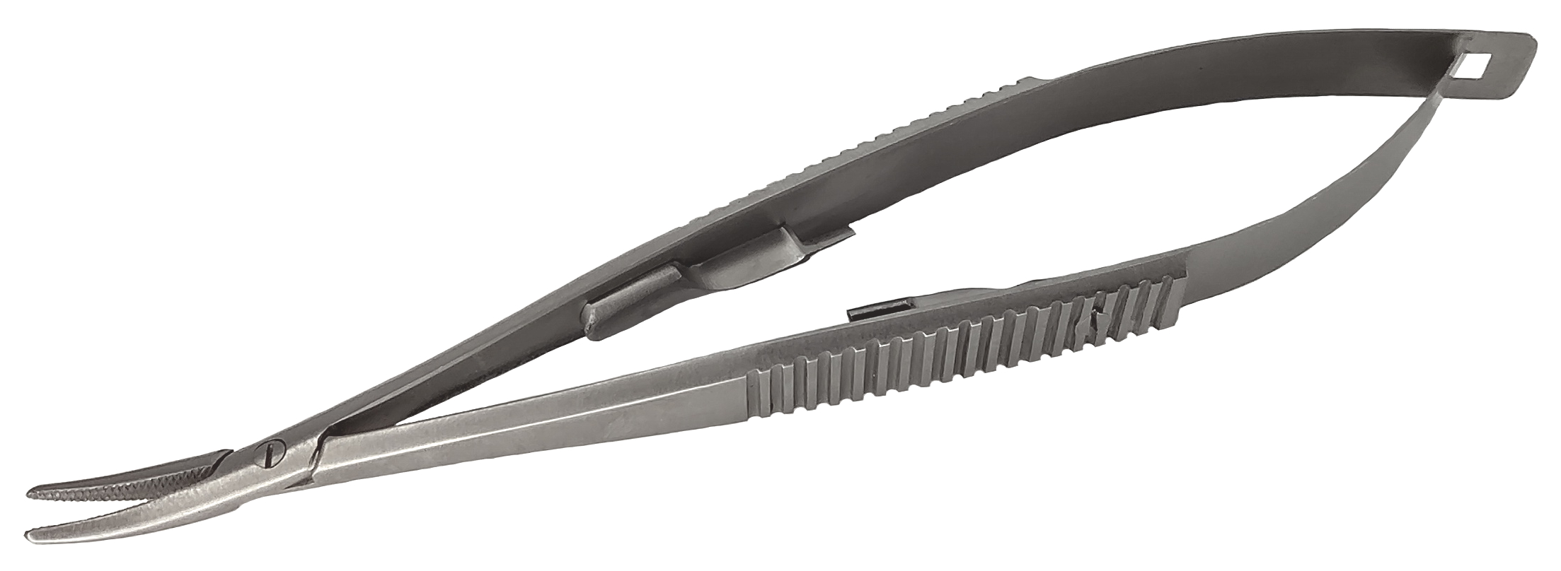 Utilizado para segurar a agulha e confeccionado com ponta delicada e revestido com pastilha de vídea oferece melhor acesso e maior segurança em microcirurgias.