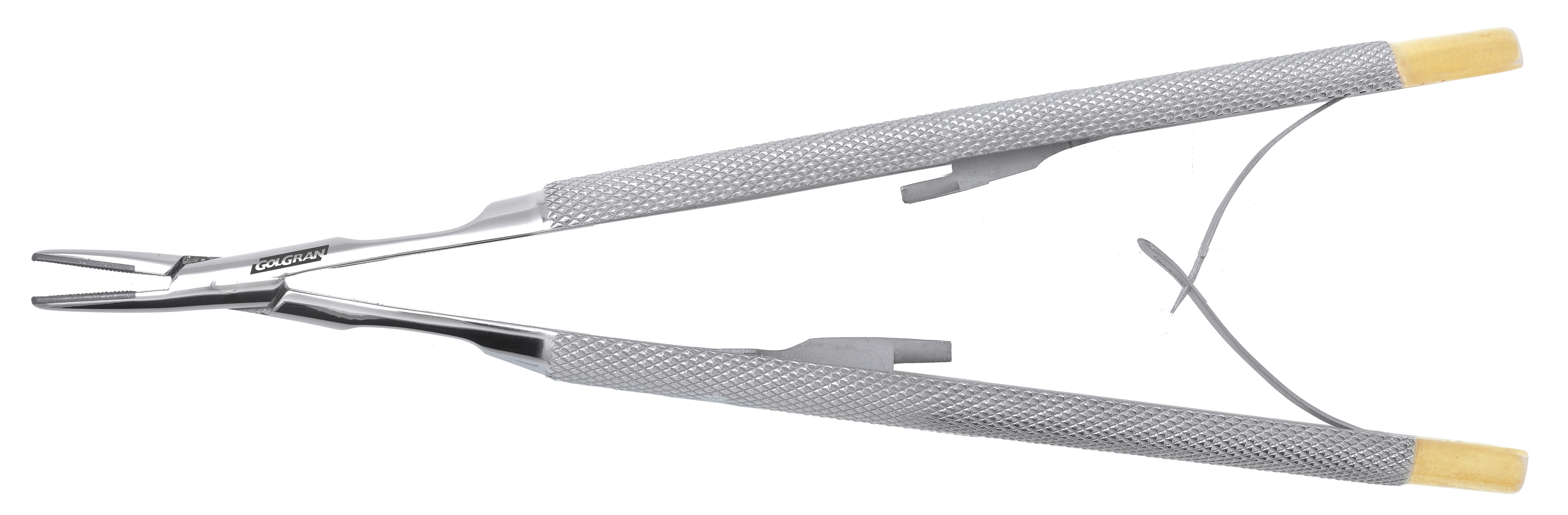 Indicado para auxiliar em microcirurgia, utilizado para travar a agulha de sutura.